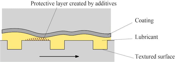 يتضمن مجال البحث الثاني تحسين الأسطح نفسها عن طريق إنشاء طلاءات جديدة (خاصة قائمة على الكربون) ، والتي تحمي الأسطح التي تتلامس مع بعضها البعض وتؤدي إلى تقليل الاحتكاك. بدلاً من ذلك ، يمكن أن تكون الأسطح مزخرفة بشبكة من الثقوب ، والتي لها أبعاد مثالية لتزييت أكثر فعالية.