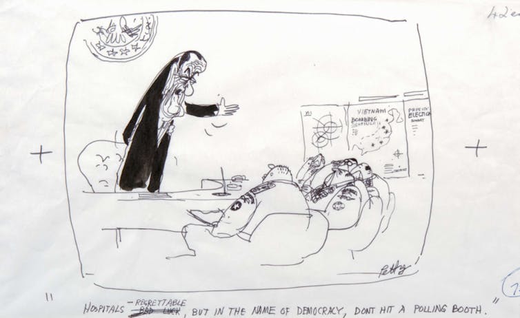 How cartoonist Bruce Petty documented the Vietnam War – and how his great satire keeps finding its moment