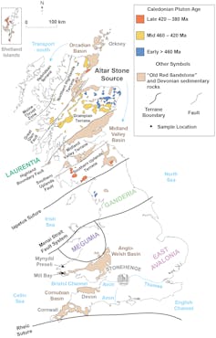 So, where is the Altar Stone from? How was it transported to southern England? To answer this, we analysed the Altar Stone’s constituent mineral grains. Our results are now published in the journal Nature – and it looks like the Altar Stone came from Scotland.
