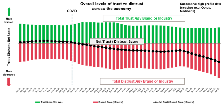 Asked about distrust or distrust of any brand in Australia in June, the result was an all-time high for distrust.