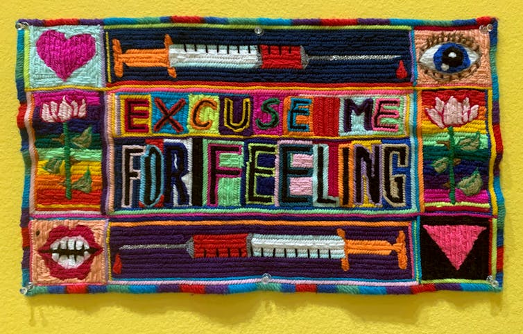 يعمل الفنان بول يور مع المواد الموجودة والمهملة ، بما في ذلك المشاريع الحرفية التي تم التخلي عنها لأشخاص آخرين. خيوط التطريز ، والجديلة ، وأخذ العينات من الغرز المتقاطعة ، وقطع اللحاف – التي كانت ذات يوم من الأشياء الواعدة والترقب – تجلس في طي النسيان في صناديق الخياطة والأدراج السفلية ، حتى يتم إرسالها إلى المتجر أو الطرف.