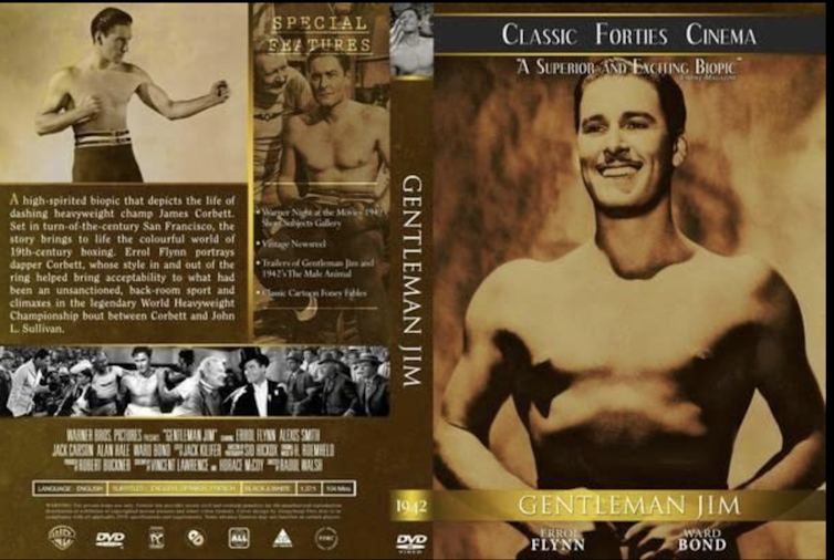 Seven years earlier, Flynn had transformed from an Australian nobody – “a Warner Brothers stock player like a million others” – to a Hollywood idol thanks to his casting in the title role of the 1935 film Captain Blood. Flynn quickly became an iconic action hero. His was a mix of physical beauty, devilish charm, gallantry and a raw colonial masculinity enacted in fighting scenes. He was so often armed with swords he earned the sobriquet of “swashbuckler”.